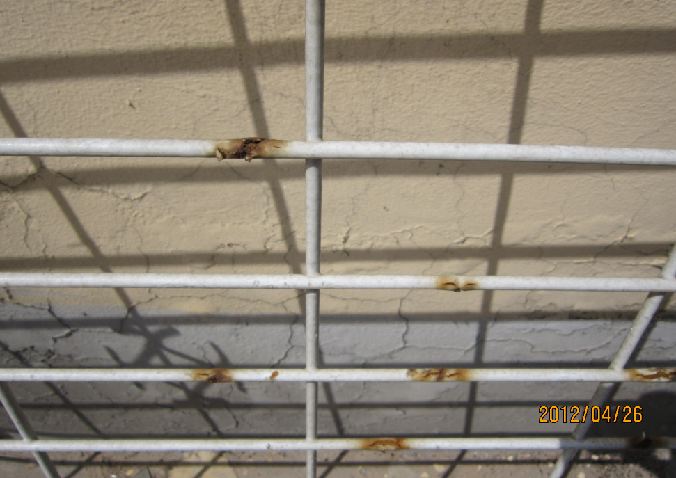 市场上的劣质网栏(塑层不抗老化)开裂多么均匀啊!-