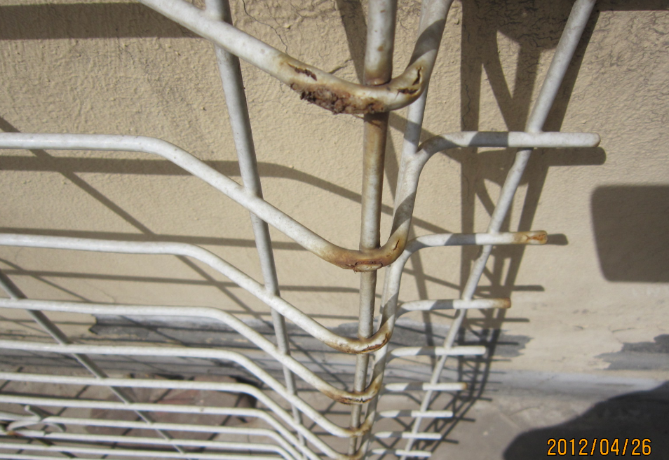市场上的劣质网栏(焊接有缺陷,锈蚀先从焊缝开始)