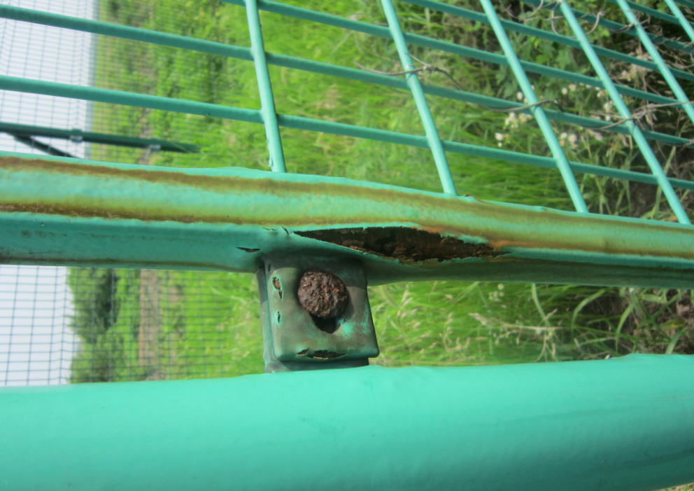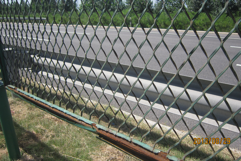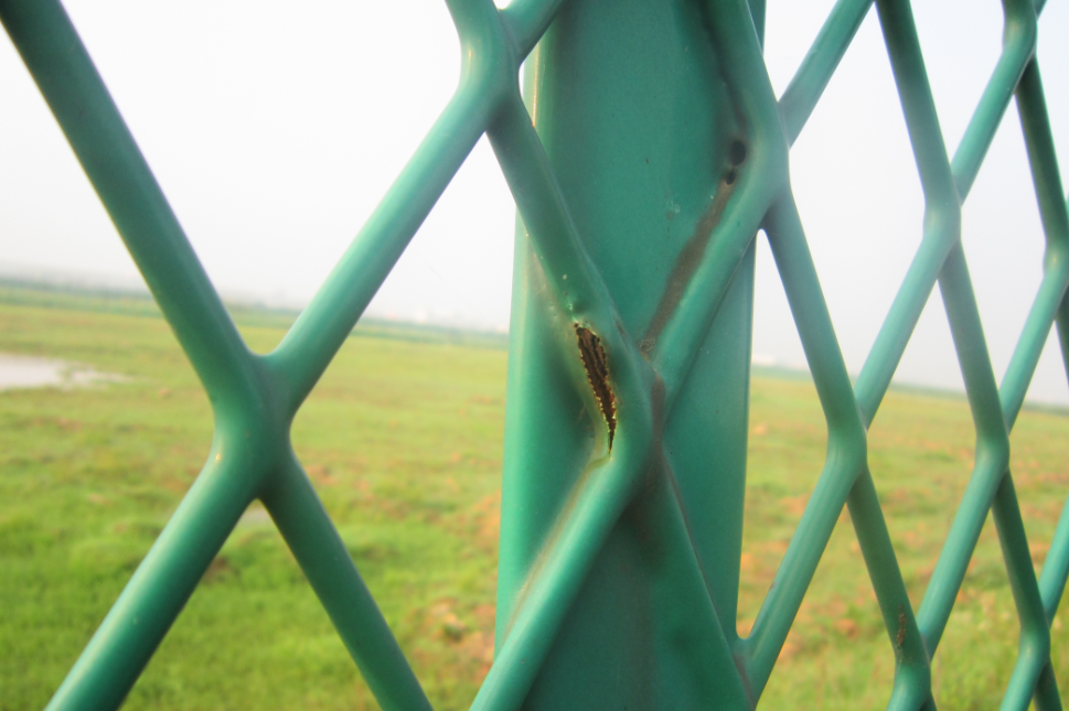 市场上的劣质网栏(塑层韧性差,稍有磨损便破裂)