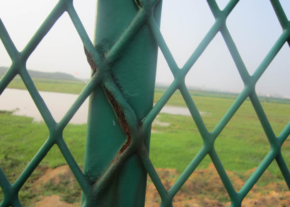市场上的劣质网栏(焊接有缺陷,锈蚀先从焊缝开始)