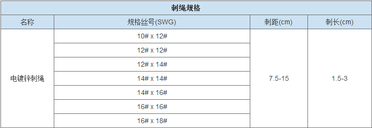 电镀锌刺绳(刺铁丝)是指由电镀锌刺丝缠绕在主丝上面拧编而成,从而起到防护、隔离作用。其中拧编方式分为单股拧编和双股拧编。施工方式有直接安装方式和螺旋状交叉方式。